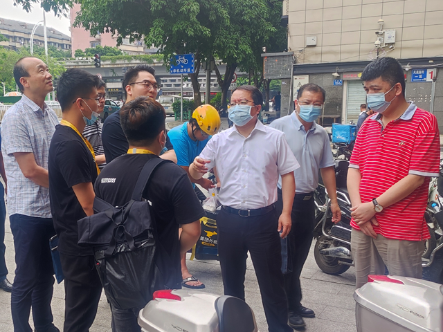 2021年6月8日上午,省市场监督管理局党组成员、省知识产权局局长、省知识产权发展保护中心主任颜志煌带领省市场监督管理局网监处、餐饮处负责人一行赴福州市开展“整治脏乱差店家入驻外卖平台问题,强化外卖商家审核监管”点题整治督查调研工作。督导组先后检查美团平台在闽办事机构、上下杭·金银里和“网红”餐饮店,了解基层市场监管部门落实点题整治情况、美团平台网络餐饮治理有关情况及网络餐饮重点商圈、入网餐饮服务提供者经营情况,对发现的问题,现场指导,督促整改,并对点题整治下一步工作安排提出具体要求:一要强化担当作为。认真贯彻落实习近平总书记提出的“四个最严”要求,充分认识食品安全工作的重要性,强化责任担当、勇于作为,不推诿扯皮、不敷衍了事,尽心尽责为老百姓守护“舌尖上的安全”。二要强化行政指导。要督促第三方平台严格落实食品安全主体责任,完善准入、退出机制尽到法定审核义务,并及时向市场监管部门提供相关数据信息。三要强化执法办案。强化对辖区内网络餐饮经营行为的监测检查,积极摸排线索,提高执法水平,严格案件查办。四要强化监管效果。对于群众关切、反映较多的问题以及订单量大、知名度高的网络餐饮商圈、入网餐饮服务提供者开展重点监管,提升监管质效。要发动社会各界和人民群众共同监督,运用先进信息技术手段提升网络监测、监管、取证、反制等能力水平,采取综合治理措施提升监管效果的社会满意度。